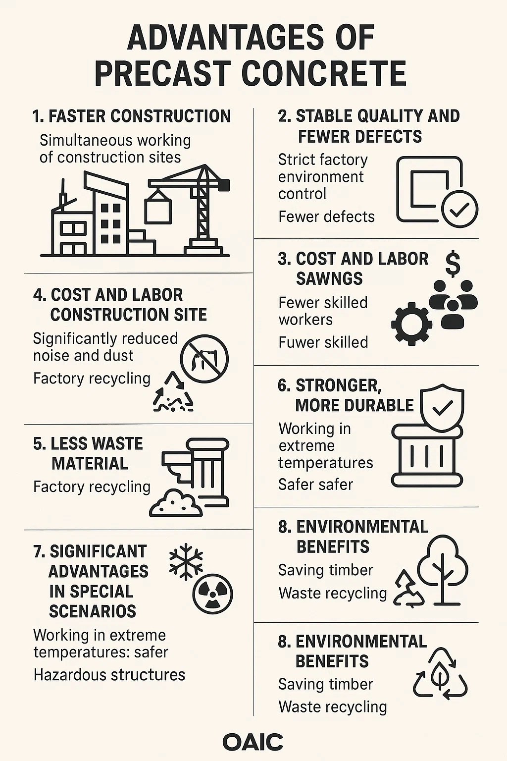 El montaje in situ es como bloques de construcción: el hormigón prefabricado se iza directamente al sitio, lo que ahorra tiempo dedicado al encofrado, el atado de barras de refuerzo y la espera de que fragüe el hormigón.