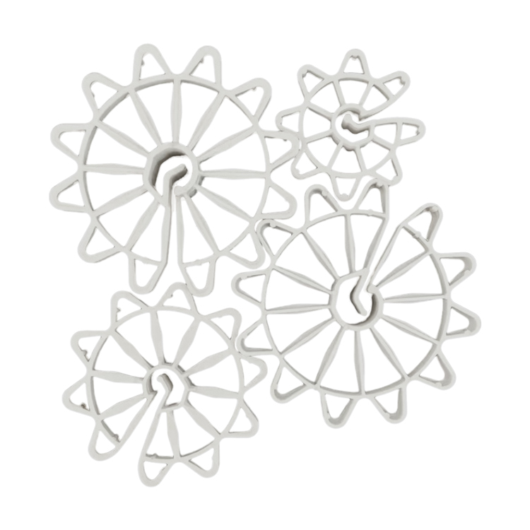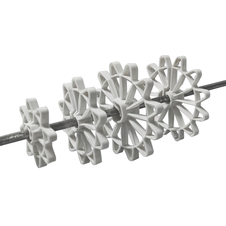 Los espaciadores de barras de plástico en forma de estrella deben distribuir uniformemente la carga y dar una mejor estabilidad para los múltiples barras de refuerzo.