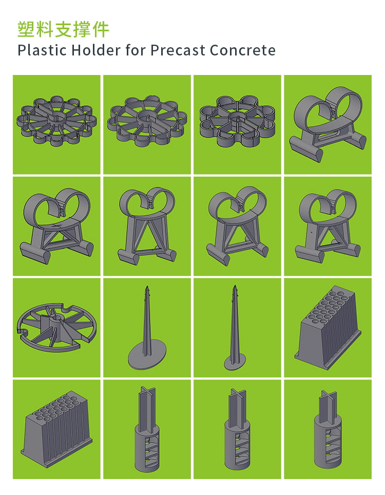 El espaciador de barras plásticas ayuda a prevenir la corrosión, garantiza una cobertura adecuada y contribuye al fortalecimiento y la longevidad de las estructuras de concreto reforzadas. Es fácil de usar y barato, se usan ampliamente en proyectos de construcción prefabricada, desde pequeñas construcciones residenciales hasta trabajos de infraestructura a gran escala.